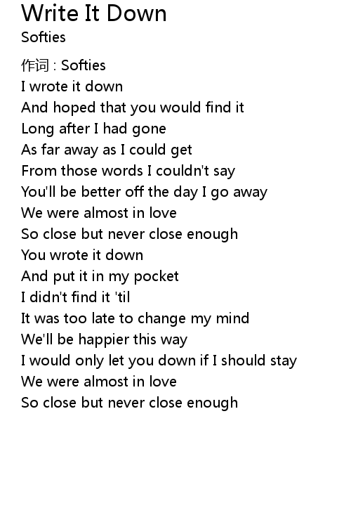 | Song | Write It Down |