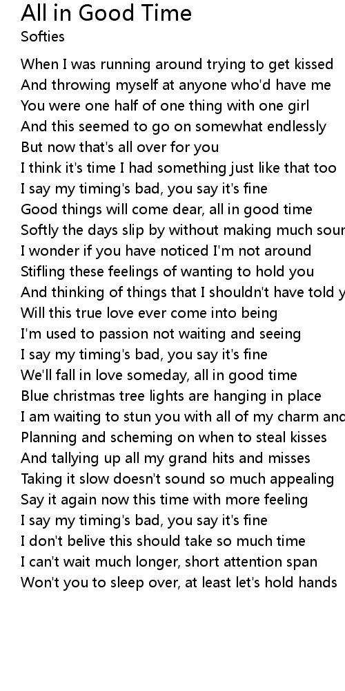 We'll fall in love someday, all in good time |