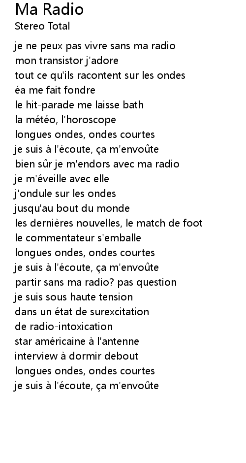 | je ne peux pas vivre sans ma radio | |