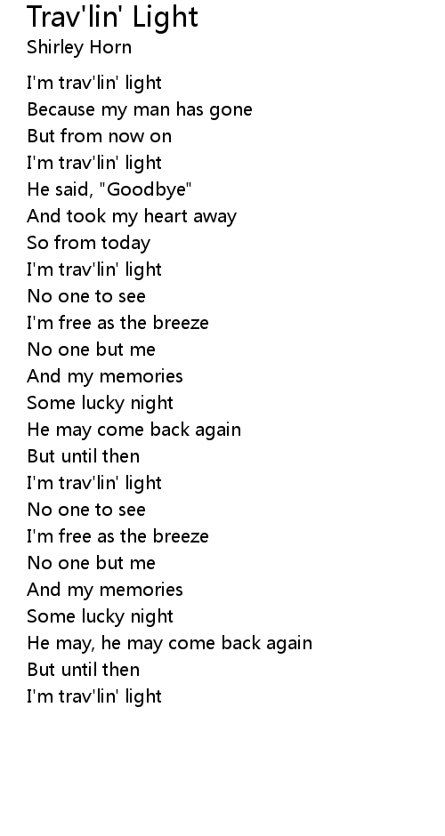 | I'm trav'lin' light | |