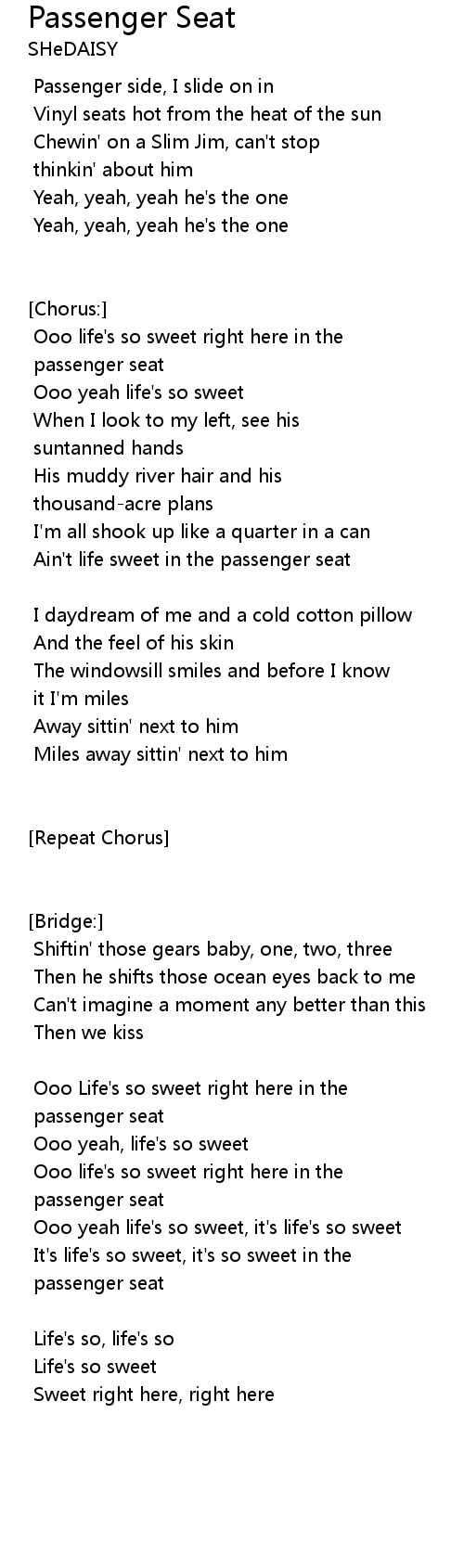 Ain't life sweet in the passenger seat |