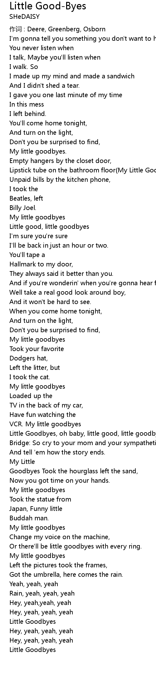 | Little Goodbyes, oh baby, little good, little goodbyes | |