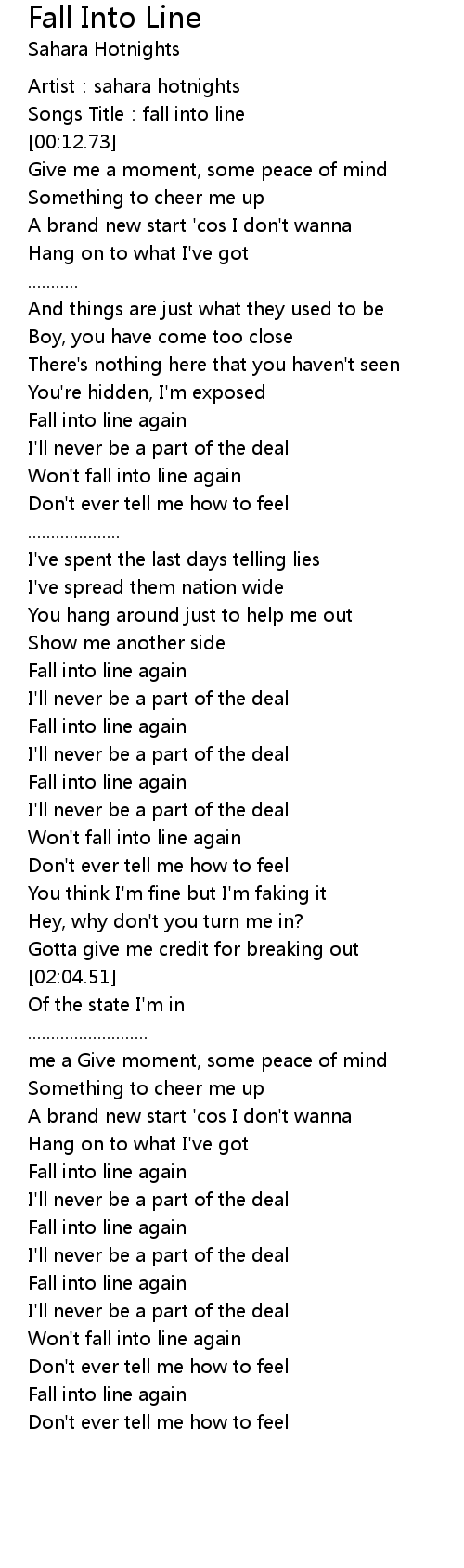 | [00:02.25] | Songs Title: fall into line |