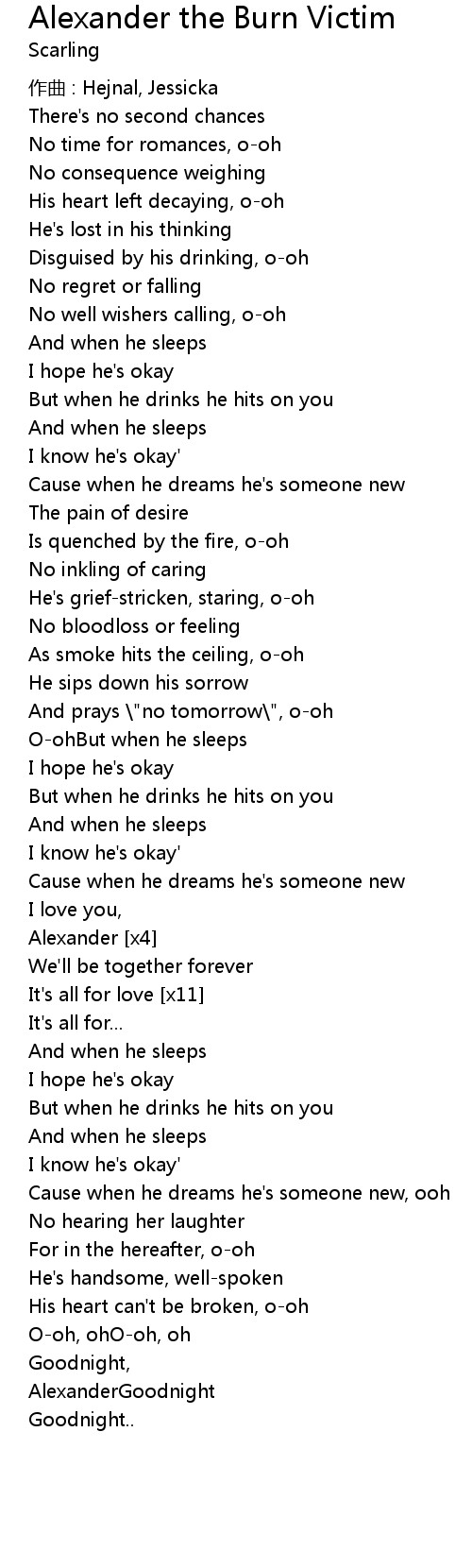 | Song | Alexander the Burn Victim |