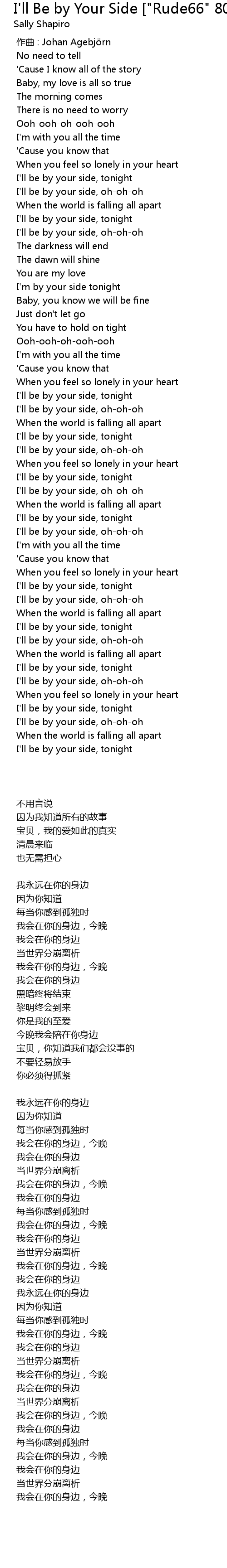 | [01:59.276] | I' m by your side tonight |
