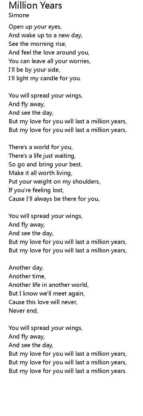 But my love for you will last a million years. |
