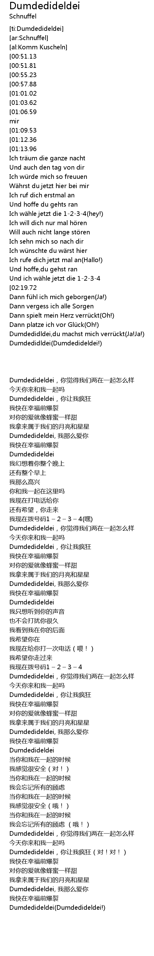 | [00:06.06][00:51.81][01:50.20][02:36.69] | Dumdedidldei,Wie währ´s mit uns zwei |
