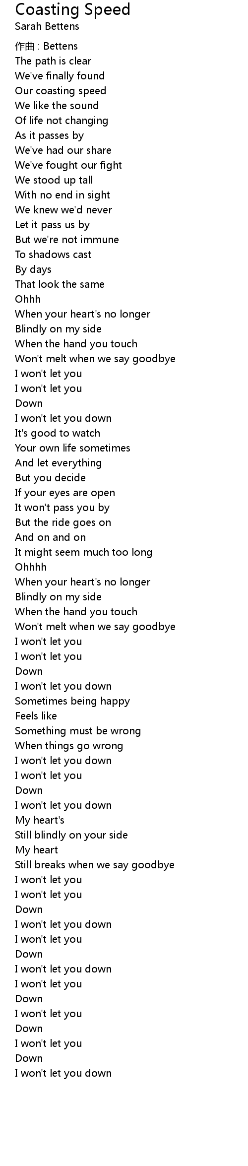 | Song | Coasting Speed |