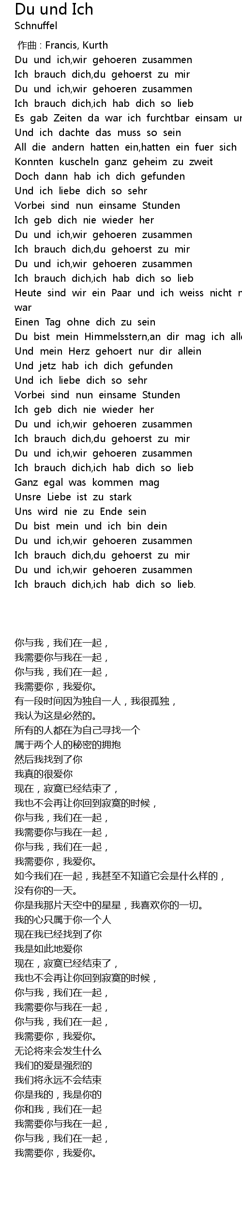 | [03:11.63] | Du und ich,wir gehoeren zusammen |