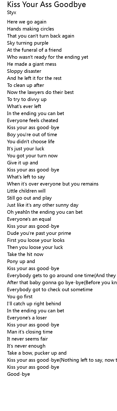 | Kiss your ass good-bye(Nothing left to say, now that it's over you can) | |
