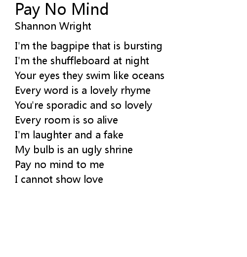 | Pay no mind to me | |