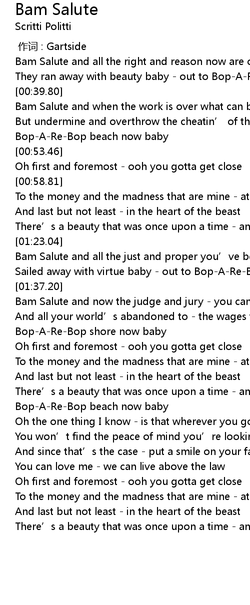 | [01:28.59] | Bam Salute and all the just and proper you’ve been waiting for |