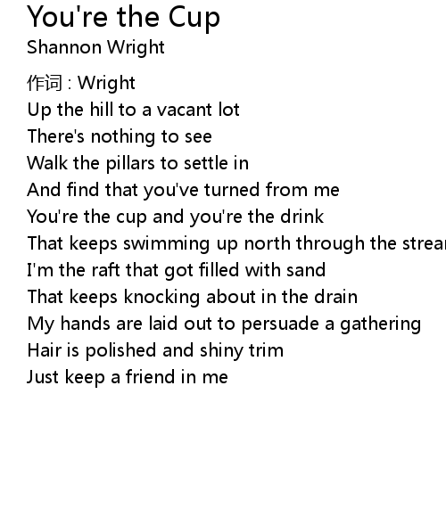 | You' re the cup and you' re the drink | |