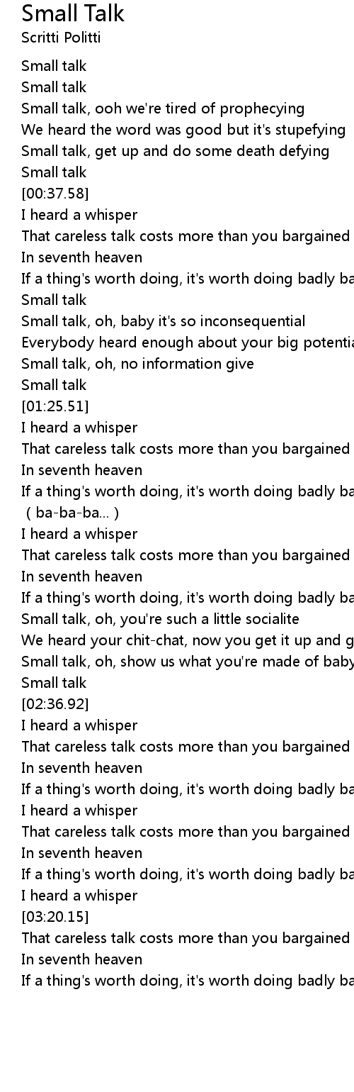 | [00:02.92] | Small talk |