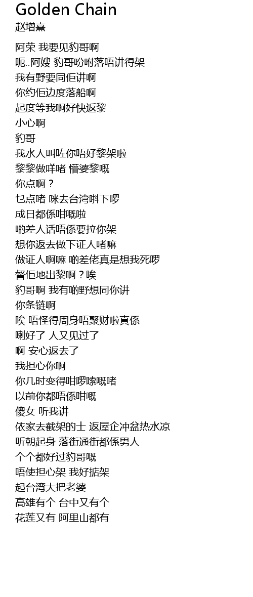 | [00:03.74] | 呃..阿嫂 豹哥吩咐落唔讲得架 |