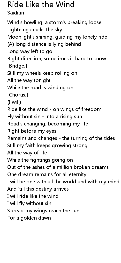 | I will ride like the wind | |