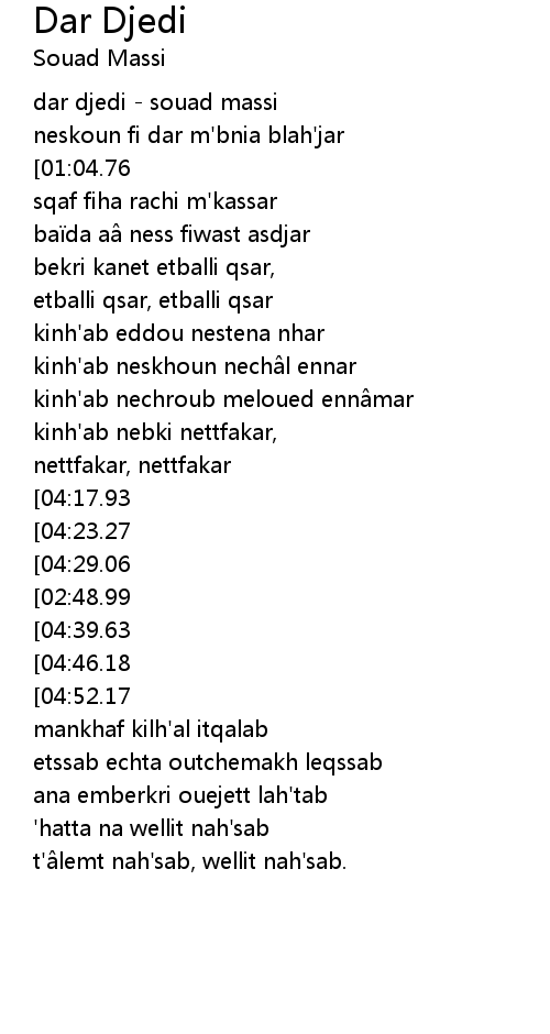 | [00:00.80] | dar djedi souad massi |