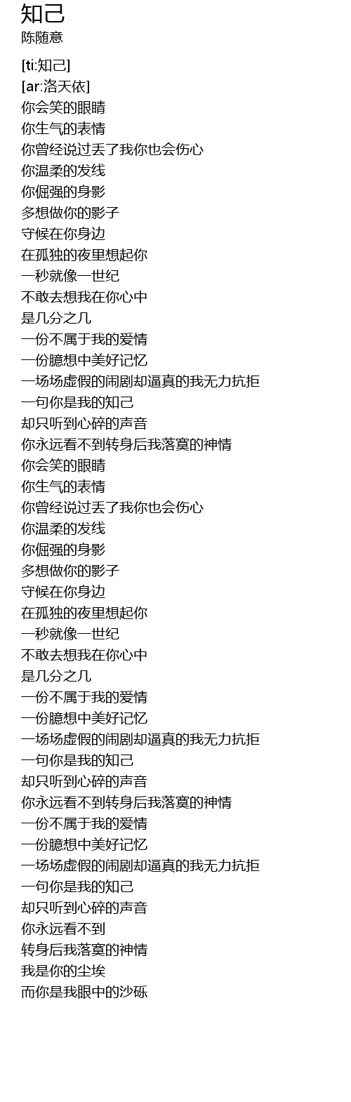 | [01:53.891] | yī jù nǐ shì wǒ de zhī jǐ |