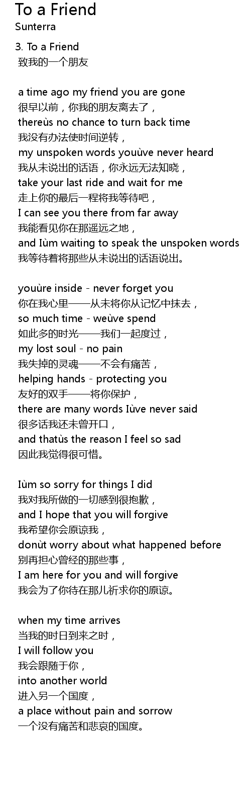 | hěn zǎo yǐ qián, nǐ wǒ de péng yǒu lí qù le, | |