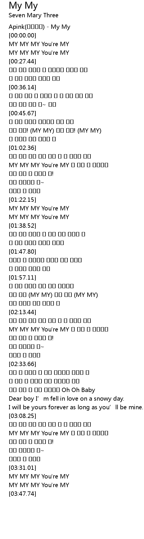 | [03:45.16] | MY MY MY You' re MY |