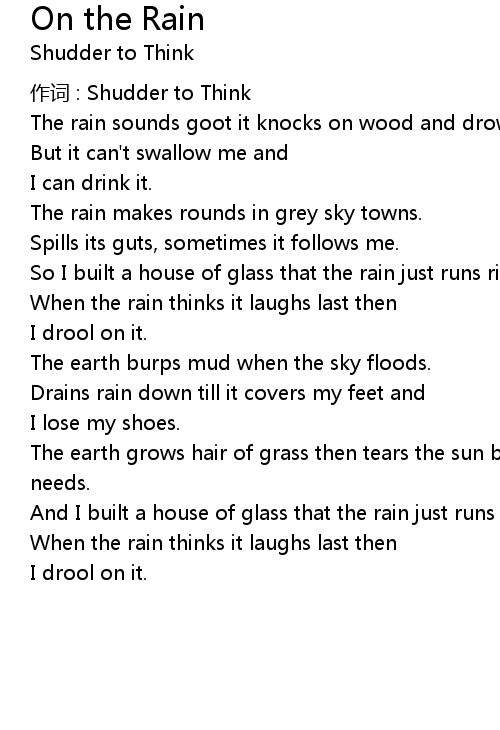 | The rain sounds goot it knocks on wood and drowns my house. | |