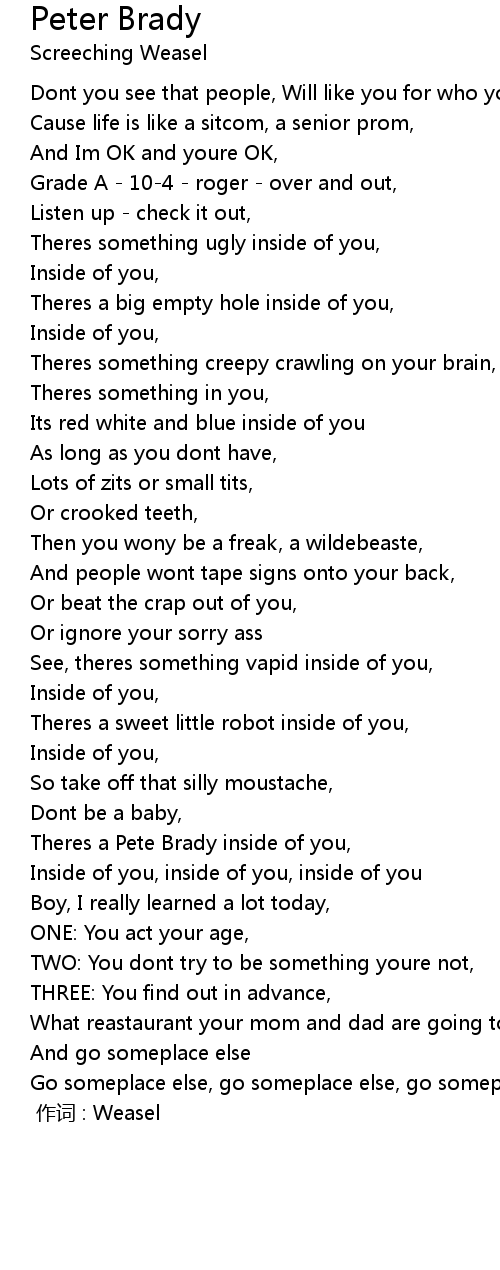 | [01:25] | Theres a Pete Brady inside of you, |