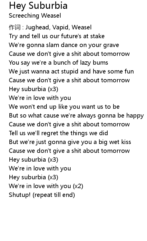 | Song | Hey Suburbia |