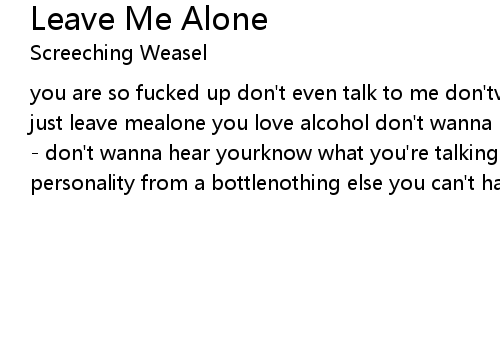 | you are so fucked up don't even talk to me don'tvoice don't wanna hear a sound - just leave mealone you love alcohol don't wanna know fromfrom me leave me alone - don't wanna hear yourknow what you're talking about get the fuck awayit personality from a bottlenothing else you can't have a good time without |
