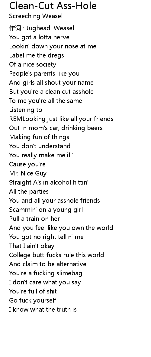 | Song | Clean-Cut Ass-Hole |