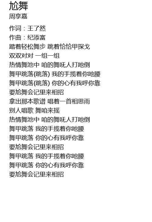 | ta zhe qing song wu bu tiao zhe qia qia jia tan ge | |