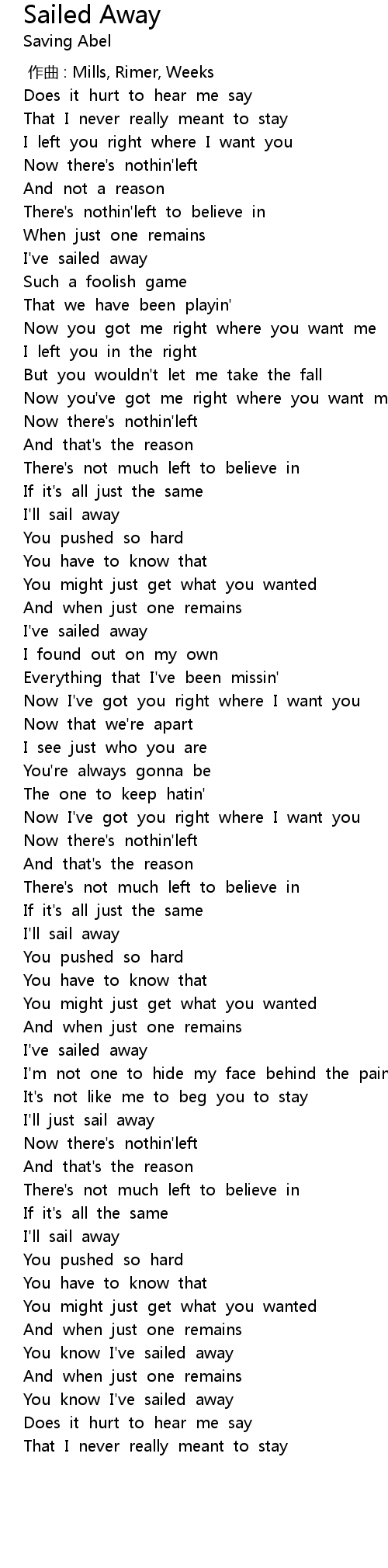 | [03:46.131] | You know I' ve sailed away |