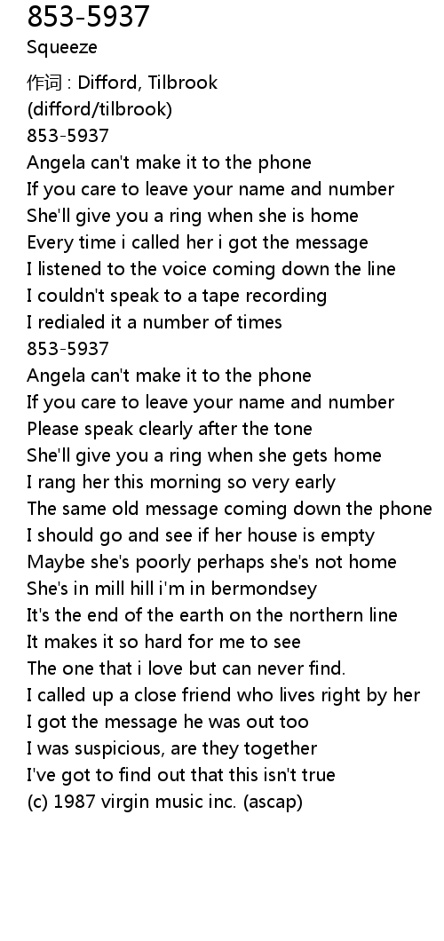 | Song | 853-5937 |