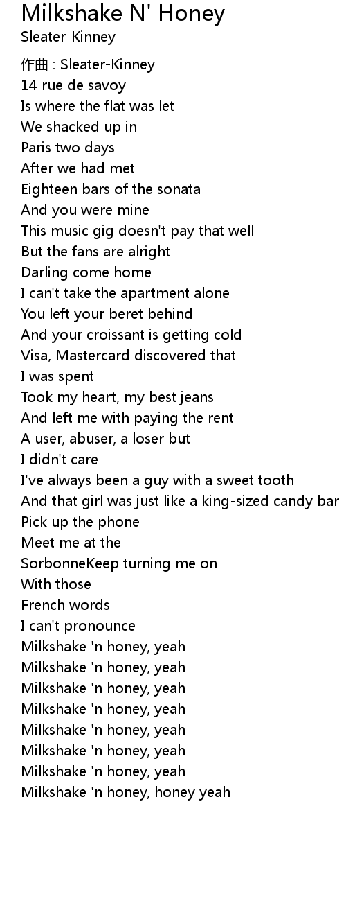 | Milkshake ' n honey, honey yeah |