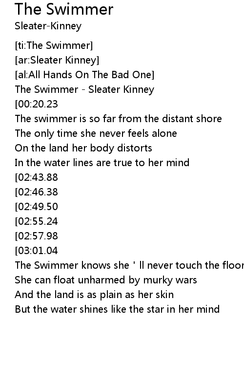 | [00:01.70] | The Swimmer Sleater Kinney |