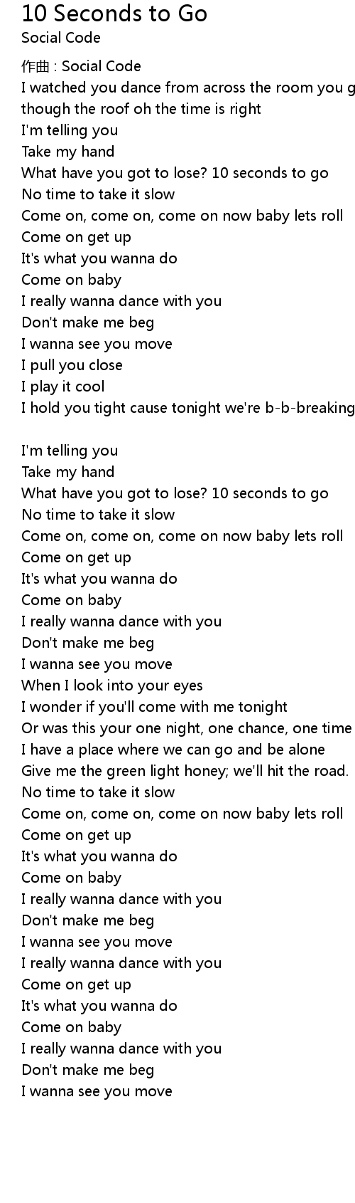 | Give me the green light honey we' ll hit the road. 10 seconds to go | |