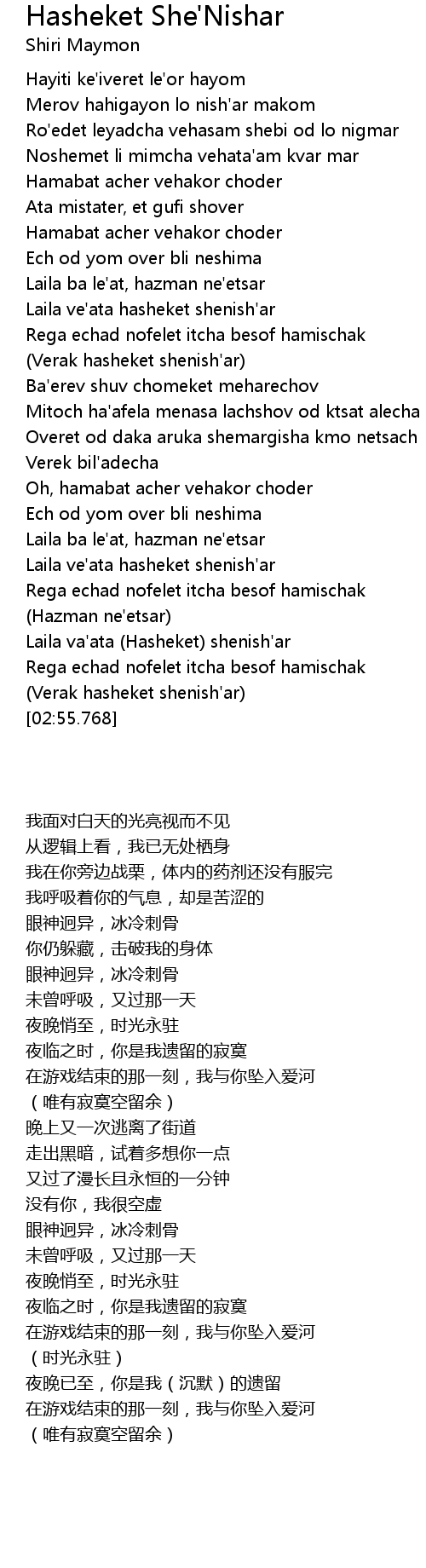 Laila ve'ata hasheket shenish'ar |