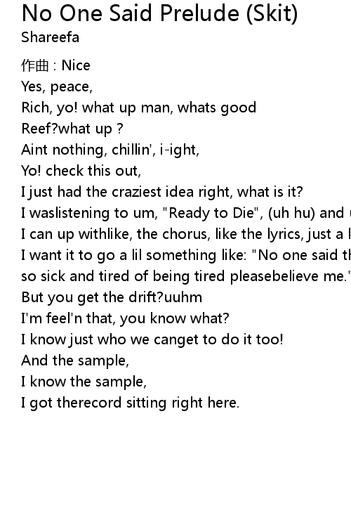 | Song | No One Said Prelude (Skit) |
