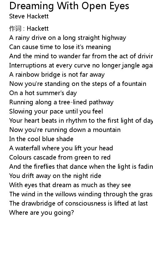 | Song | Dreaming With Open Eyes |