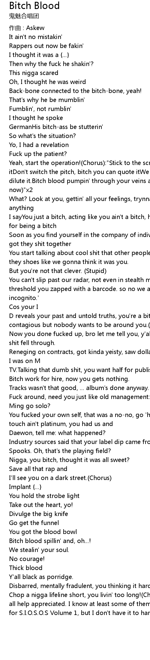 | D reveals your past and untold truths, you're a bitch-blood carrier, you're not contagious but nobody wants to be around you.(Chorus) | |