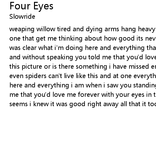 weaping willow tired and dying arms hang heavy wet with rain it's days like this one that get me thinking about how good its never been and at once everything was clear what i'm doing here and everything that's me when i saw you standing and without speaking you told me that you'd love me forever is this my life in this picture or is there something i have missed empty cobwebs in my corners even spiders can't live like this and at one everything was clear what i'm doing here and everything i am when i saw you standing and without speaking you told me that you'd love me forever with your eyes in the same instance insane as it seems i knew it was good right away all that it took was a glance from your eyes |
