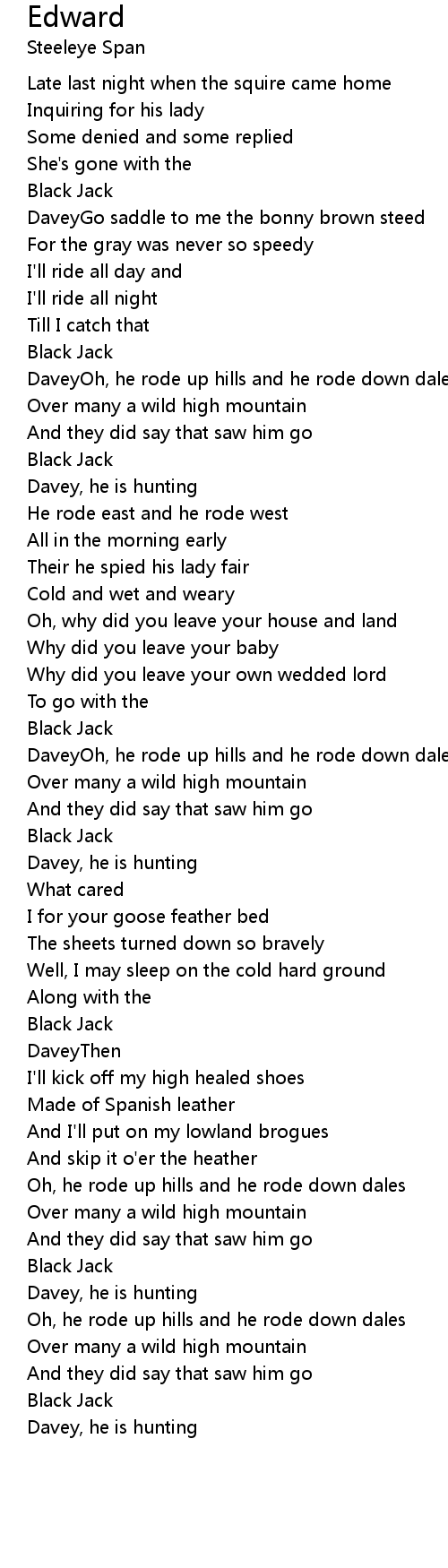 DaveyOh, he rode up hills and he rode down dales |