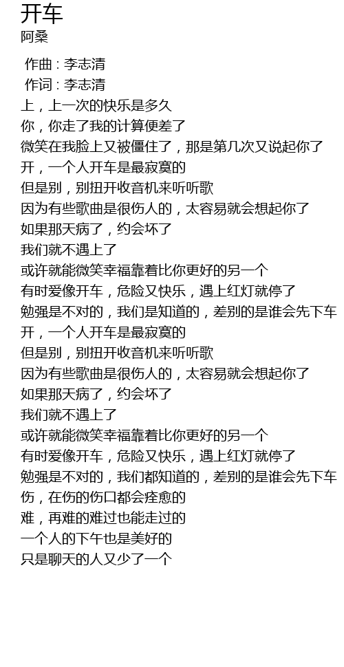 | [01:05.999] | kāi, yí ge rén kāi chē shì zuì jì mò de |