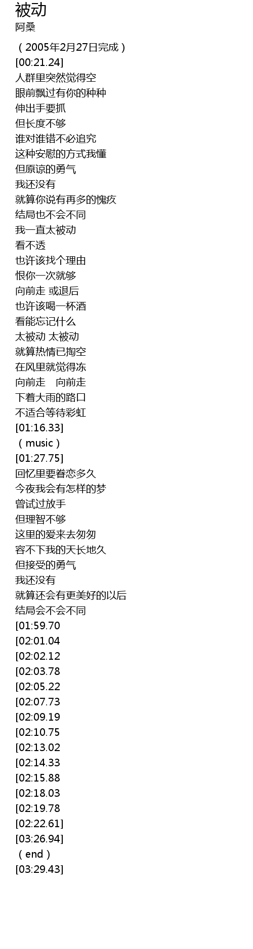 | [03:03.31][01:59.70] | 我一直太被动 |