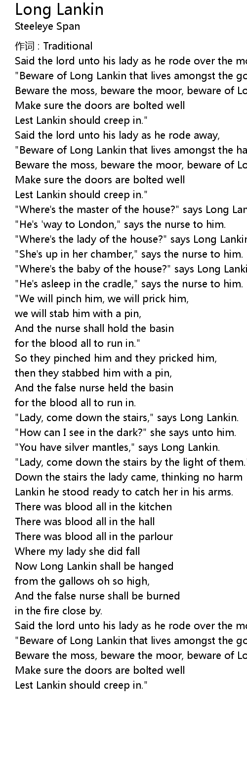 | Beware the moss, beware the moor, beware of Long Lankin | |