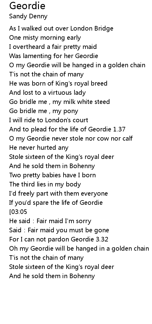| [02:48] | If you' d spare the life of Geordie |