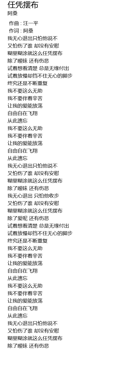 | [00:30.980] | 糊里糊涂就这么任凭摆布 |