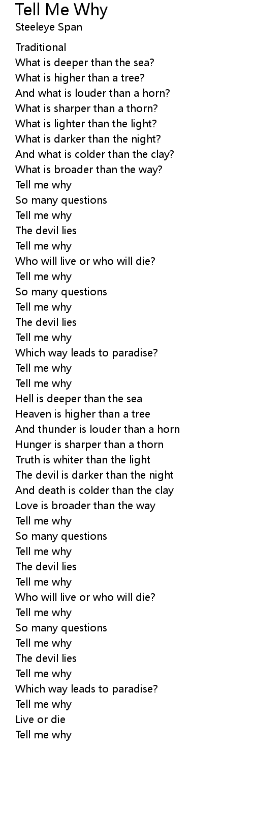 Tell me why |