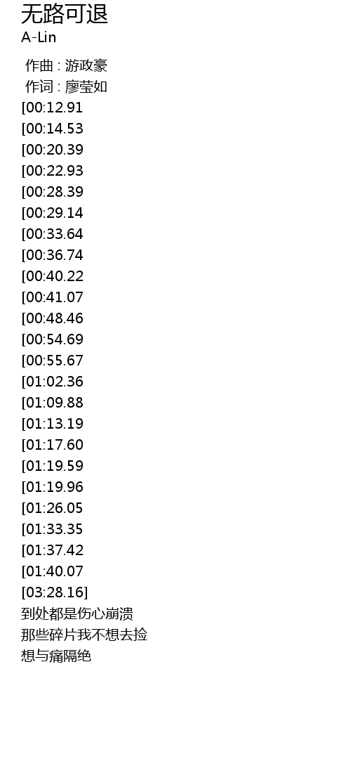 | [03:09.97][01:26.05] | 我不是委屈 无路可退 |