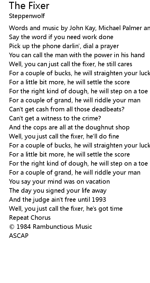 | Words and music by John Kay, Michael Palmer and Steve Palmer | |