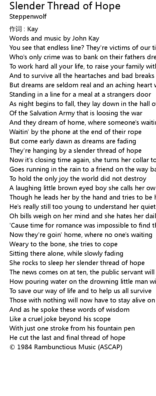 | Oh bills weigh on her mind and she hates her daily grind | |